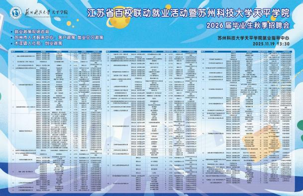 2025年11月19日,我院成功举办2026届毕业生秋季大型联合招聘会,本次招聘会得到了苏州市人才服务中心和吴中区人社局大力支持,联合邀请到65家优质企业参会,提供岗位1100多个,招聘岗位几乎涵盖我院所有专业。